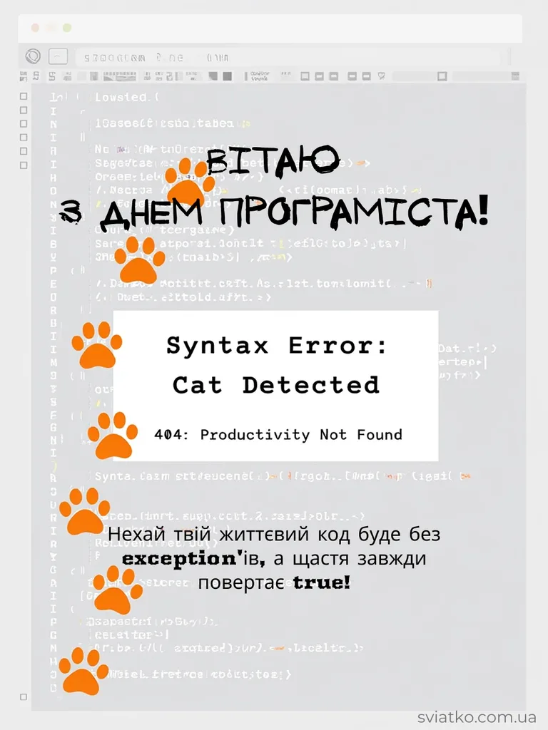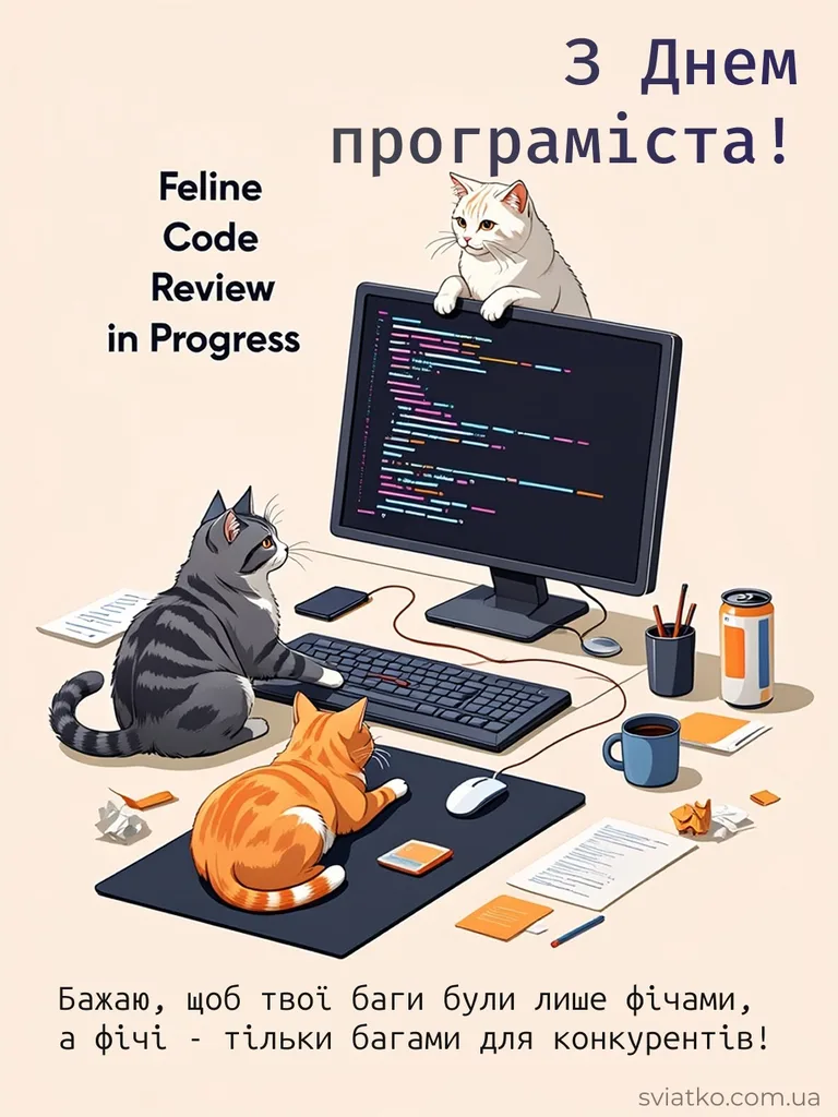 З Днем програміста! Бажаю, щоб твої баги були лише фічами, а фічі – тільки багами для конкурентів! 😄